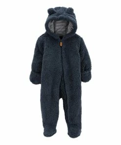 Carter’s | Navy Bear-Ear Hooded Teddy Footie – Newborn & Infant