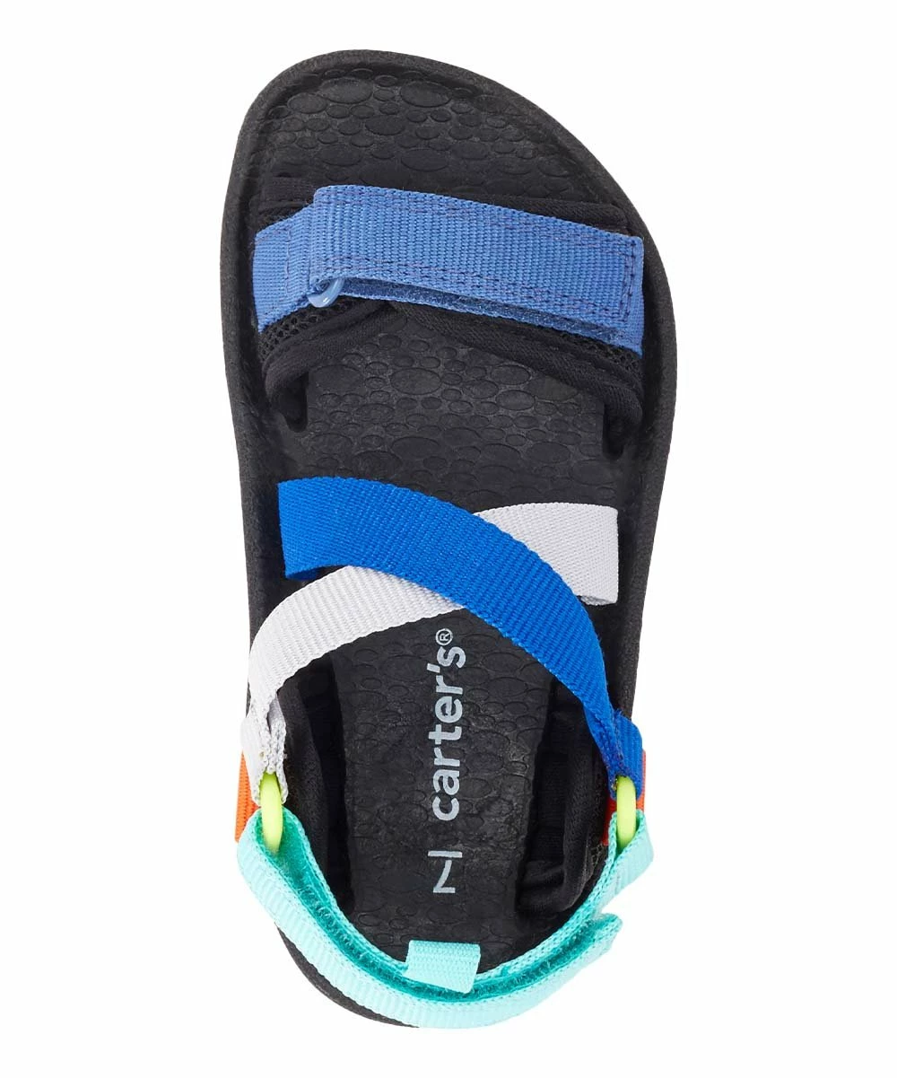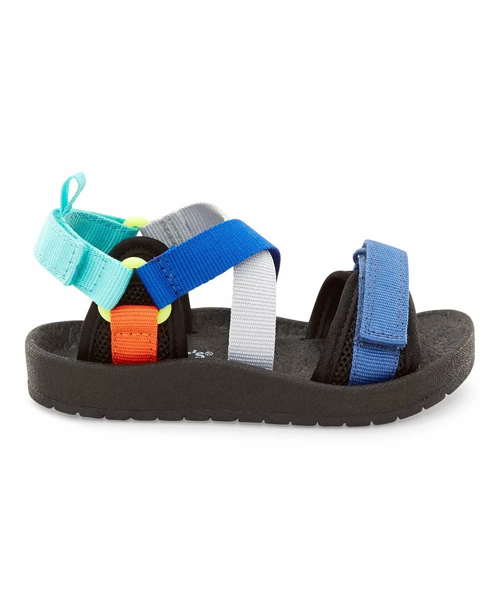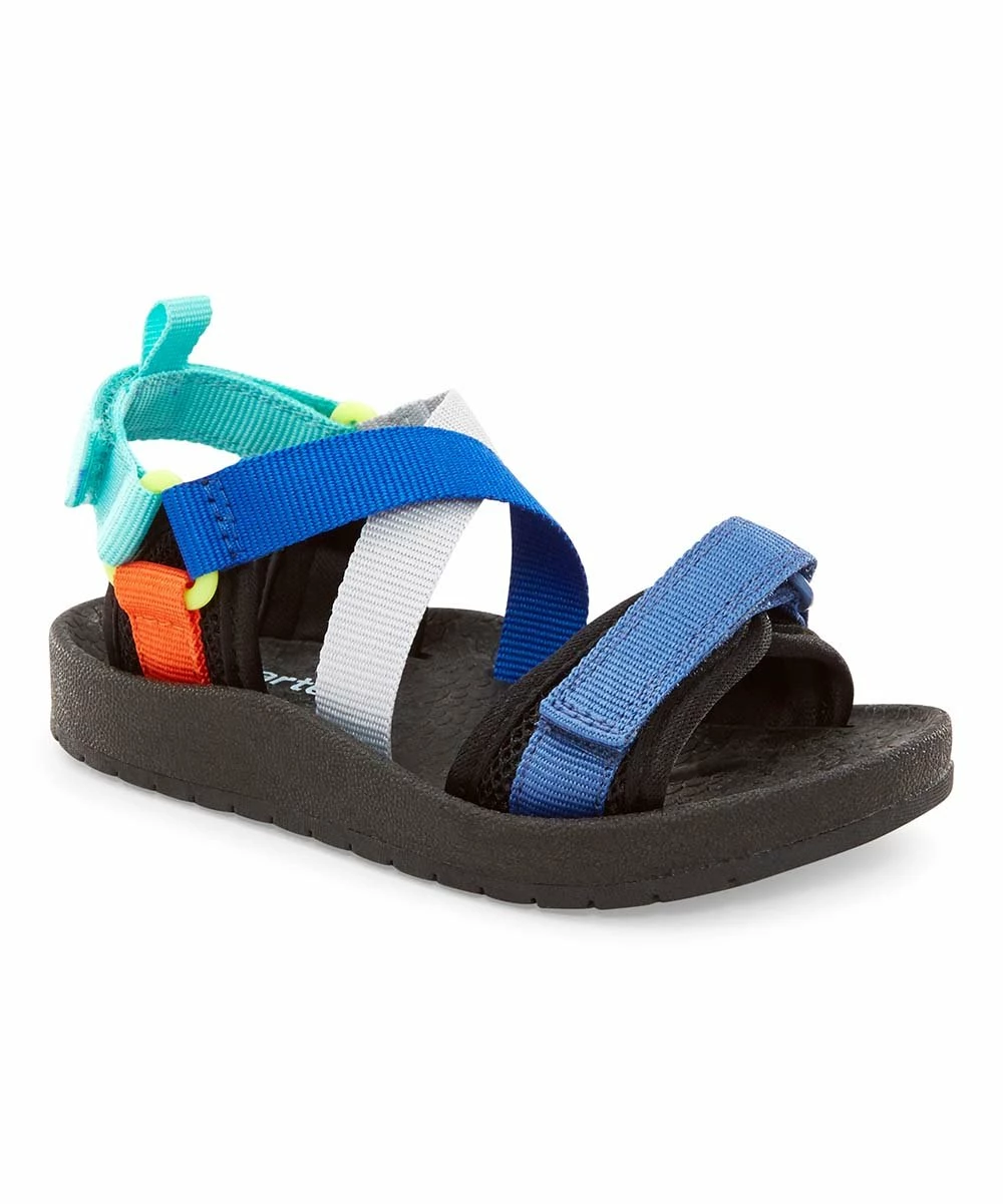 A movement-ready sandal with a contoured footbed, crisscross vamp straps and toe and ankle hook-and-loop closure straps for a secure fit.