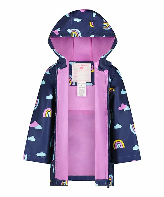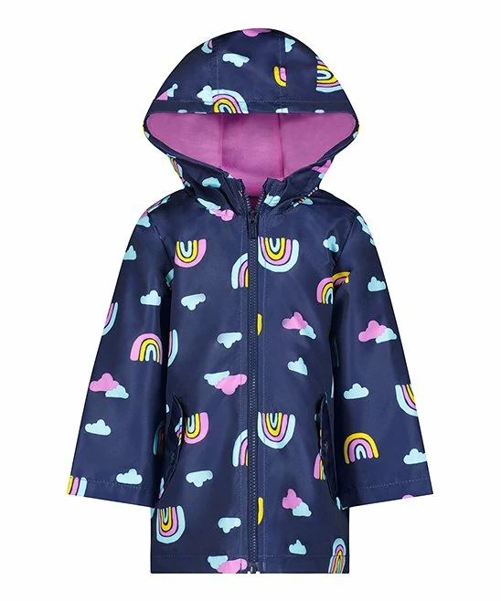 This charming raincoat keeps your youngster comfy and features a playful rainbow pattern.