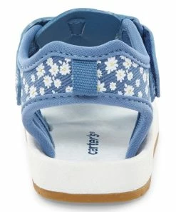 Little ones will bloom in this floral sandal featuring a hook-and-loop T-strap design for quick changes.