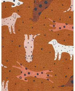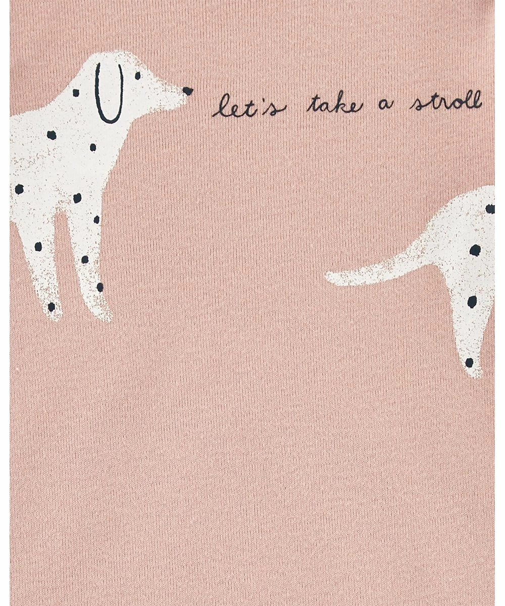 - Includes blush dalmatian bodysuit, rust dalmatian long-sleeve bodysuit, and gray leggings (three pieces total)