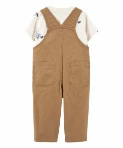 - Includes cream airplanes tee and brown overalls (two pieces total)