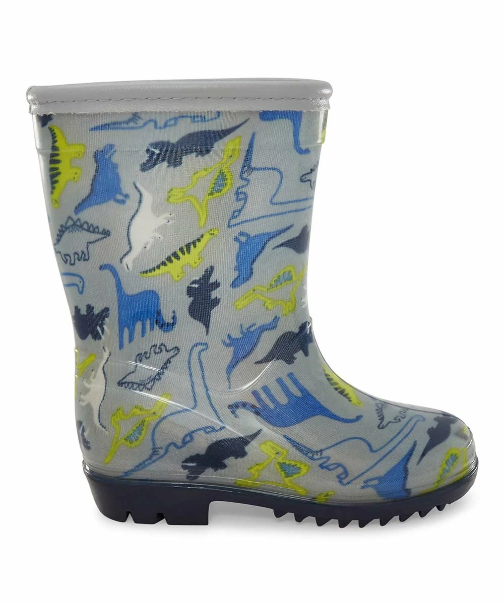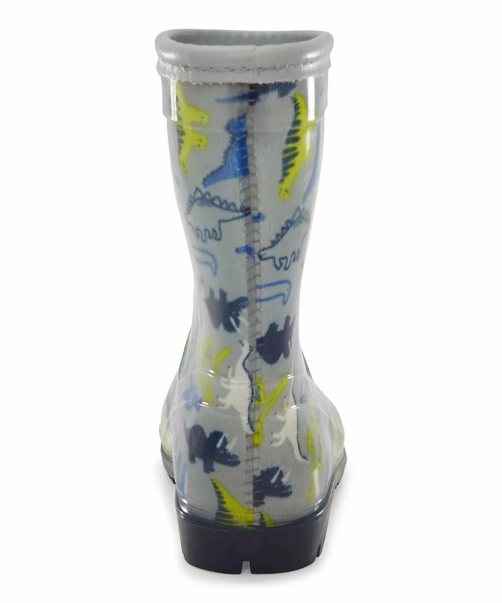 Let your little one stomp into puddles with these rain boots crafted in a water-resistant and moisture-absorbing material boasting a dynamic dinosaur pattern.
