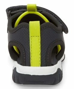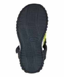 Sporty sneakers featuring a colorful design and convenient hook and loop strap.