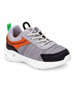 They can shine bright in this pair of colorful sneakers featuring a sole that lights up with every step. Pull loops for easy entry.