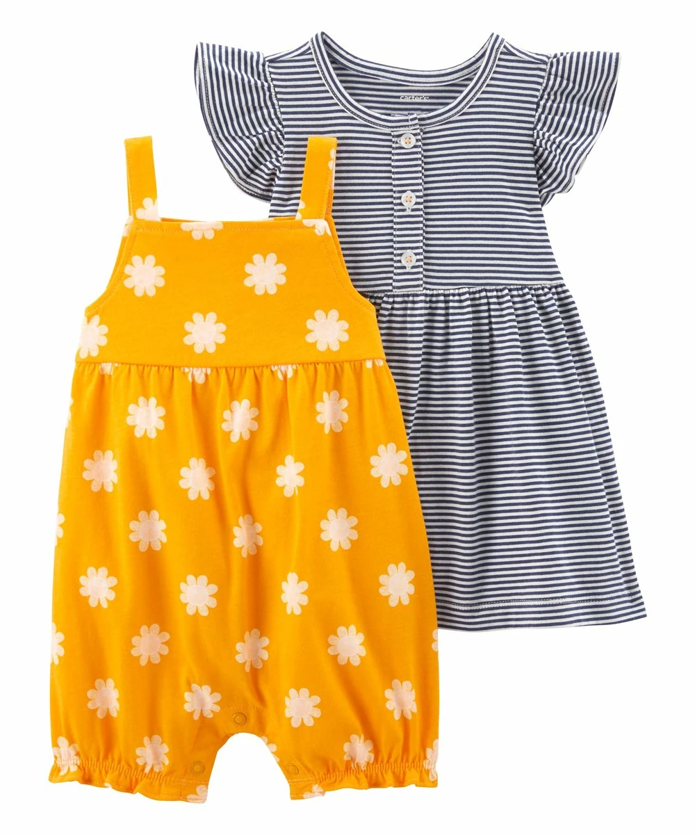 Dress Baby up in a fun, coordinated look with this dress set boasting a matching diaper cover and additional colorful romper when it’s time to switch to playtime.
