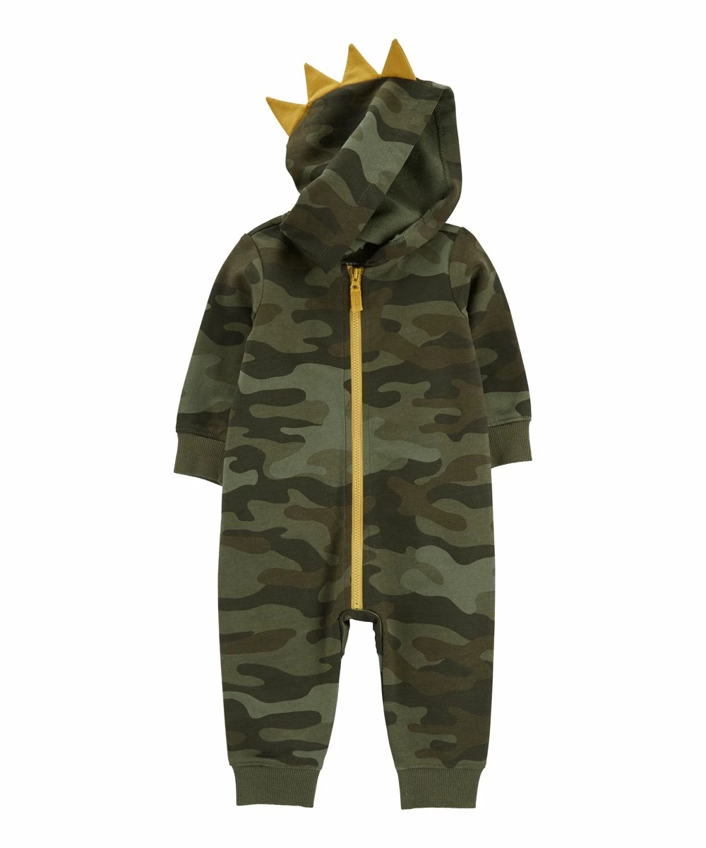 A charming camo print and a spiked hood bring adorable style to this playsuit.