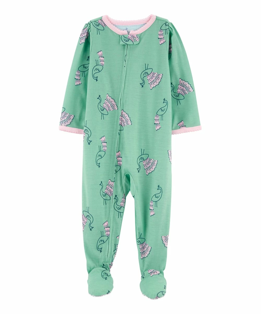 Long-sleeve footie featuring a charming pattern and zip-up design.