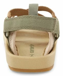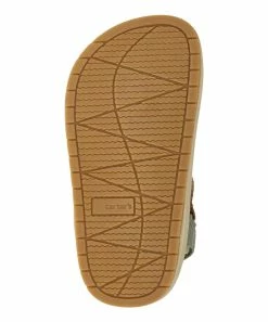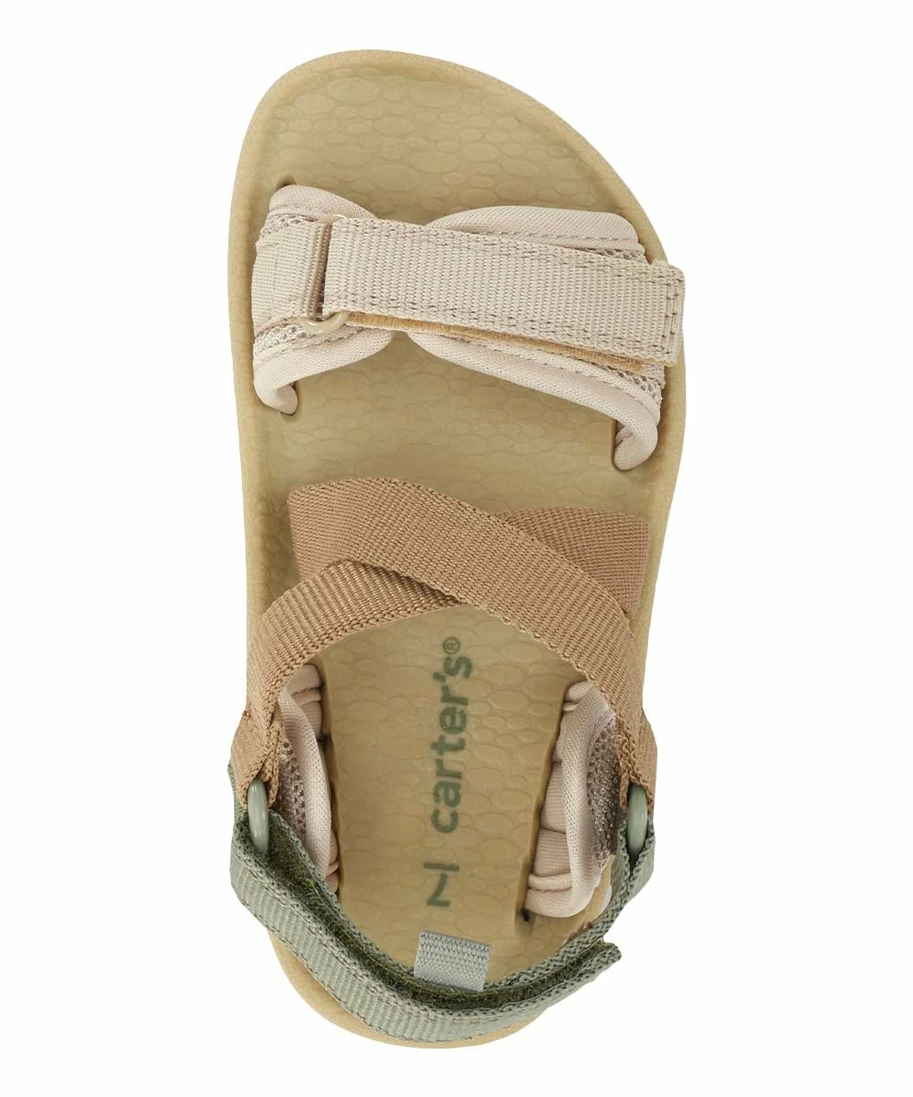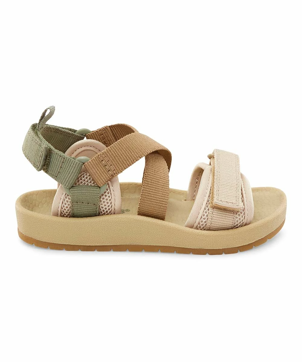A movement-ready sandal with a contoured footbed, crisscross vamp straps and toe and ankle hook-and-loop closure straps for a secure fit.