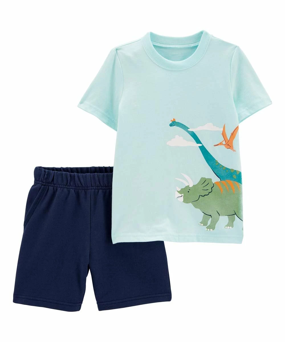 - Includes one mint crewneck tee and one pair of navy shorts (two pieces total)
