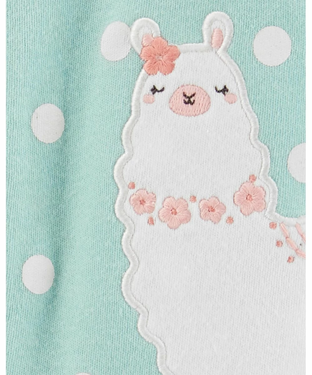 This long-sleeve footie features a zip-up closure, comfy cotton fabric, and a playful pattern with a llama appliqué.