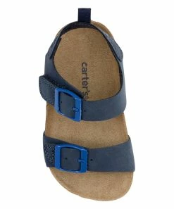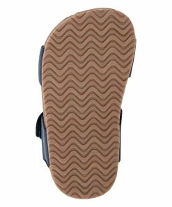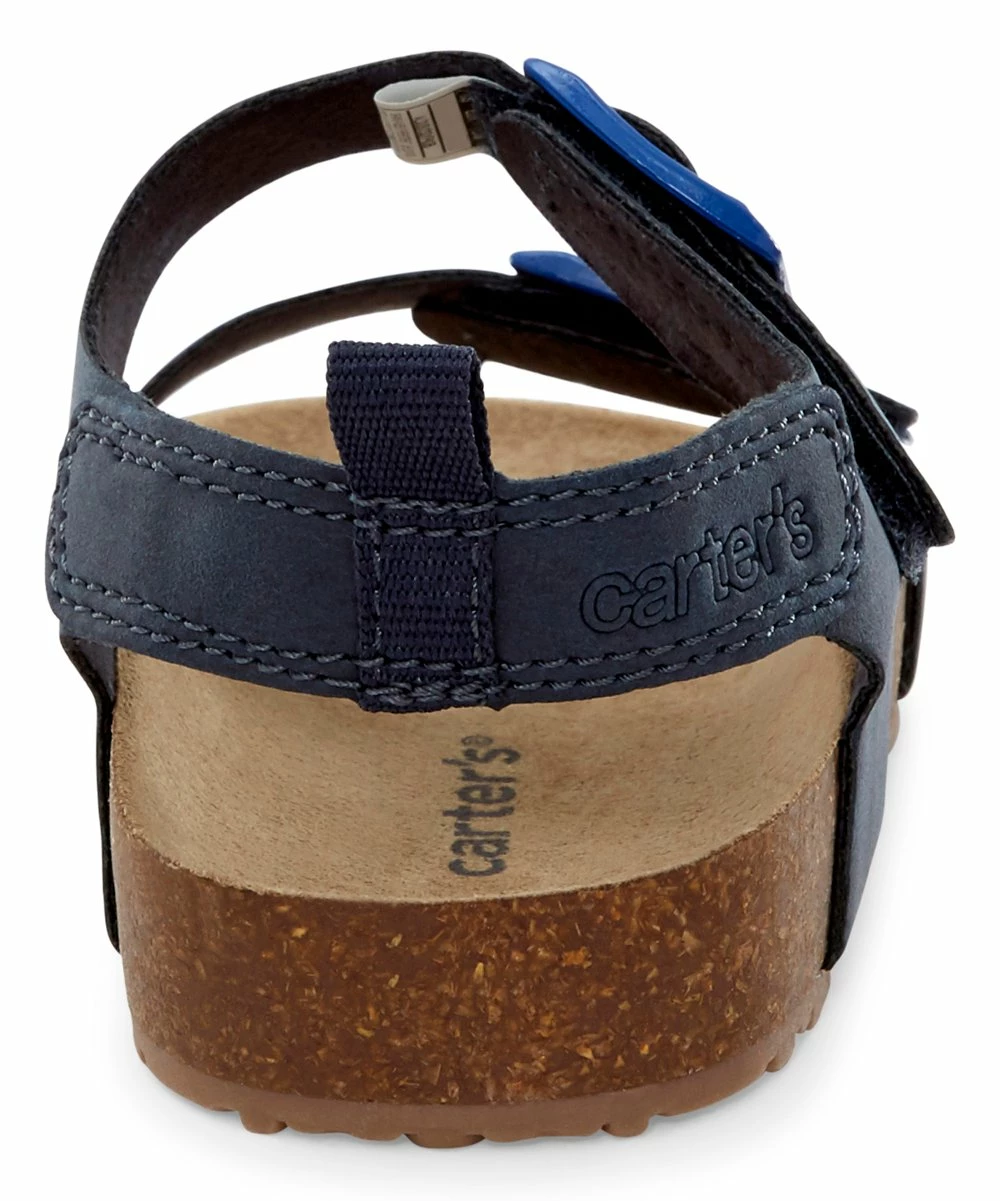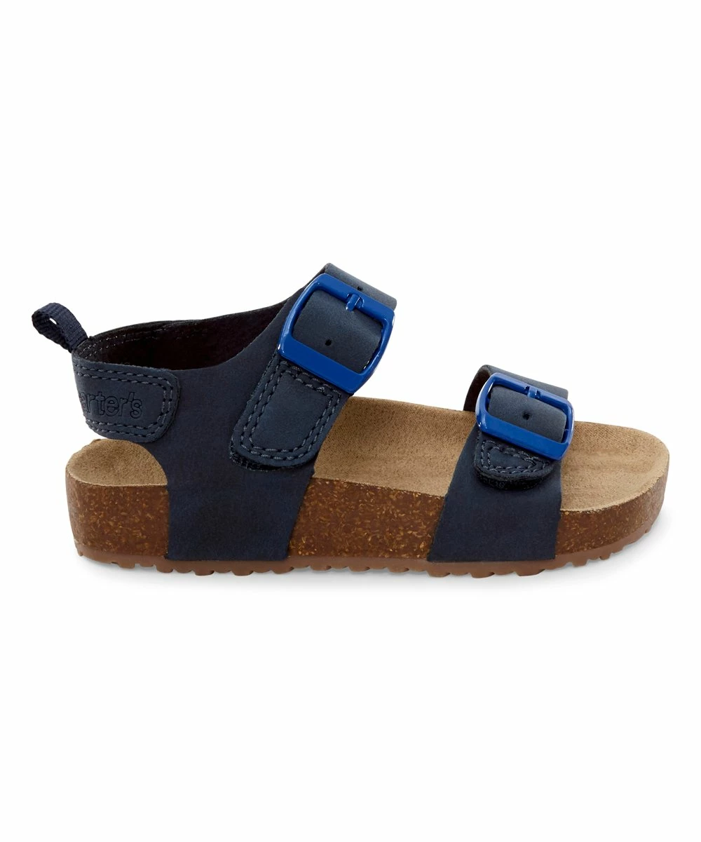 The hook-and-loop straps of this buckle-accented sandal keep on and off quick for active kids.