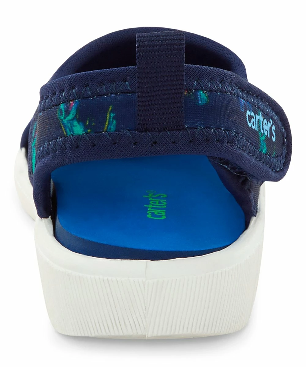Kids can make a splash on beach day with this jersey water shoe featuring a secure hook-and-loop slingback strap.