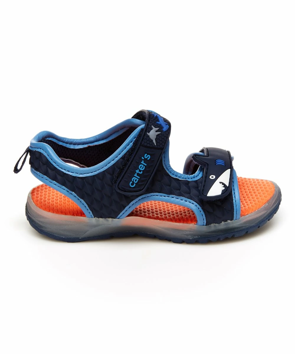 Little ones will top the style food chain in this sandal featuring a cushioned footbed, lighted sole and shark appliqués.