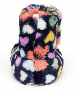 Let your little one keep their feet snuggly in these adorable slippers starring colorful hearts and cozy faux fur for all-around comfort.