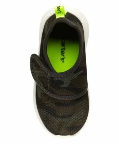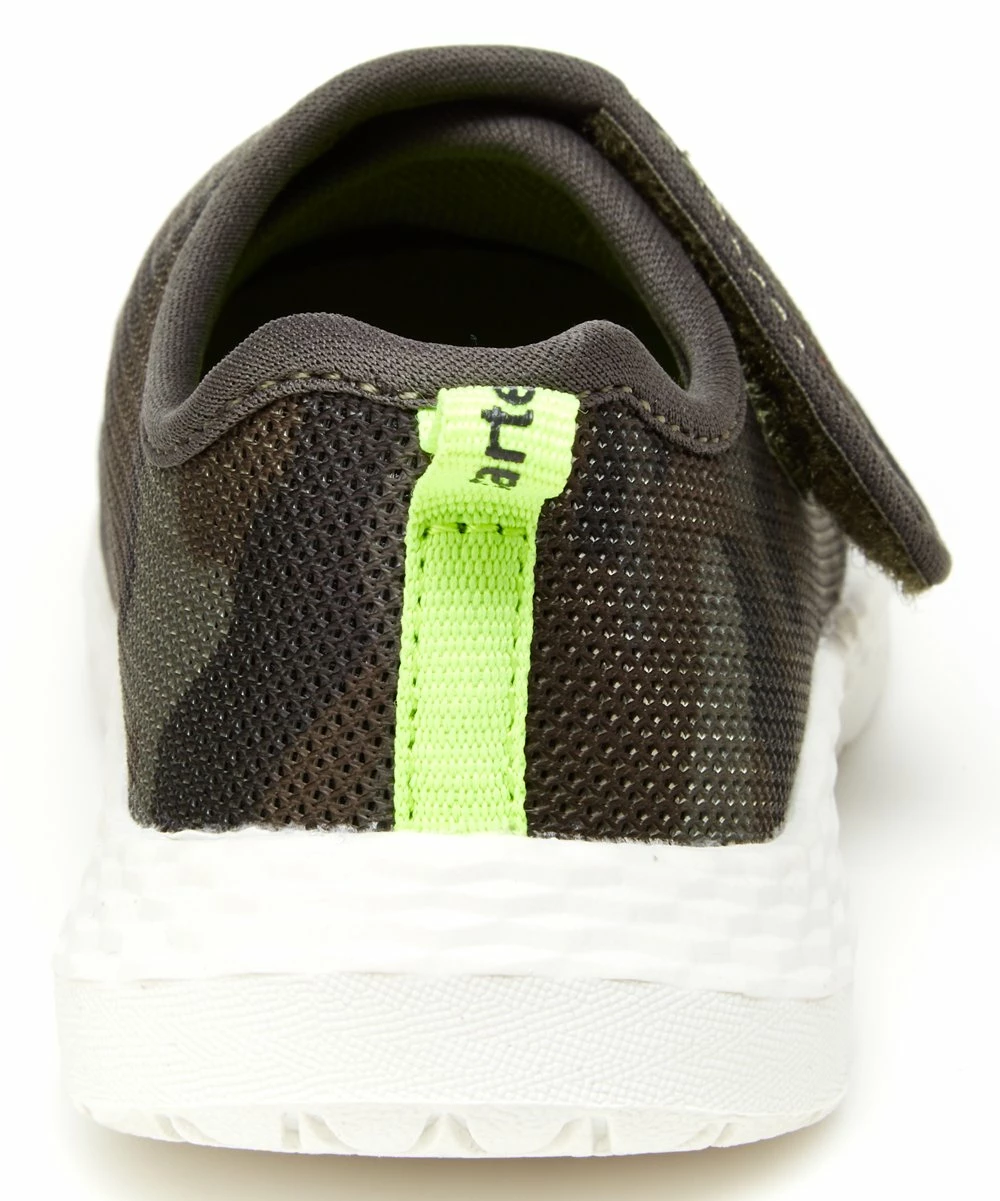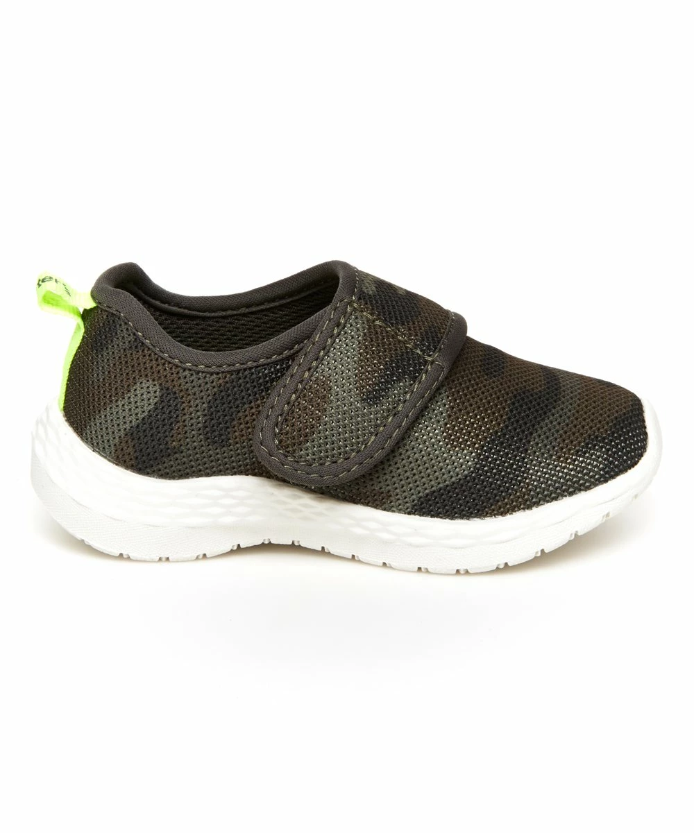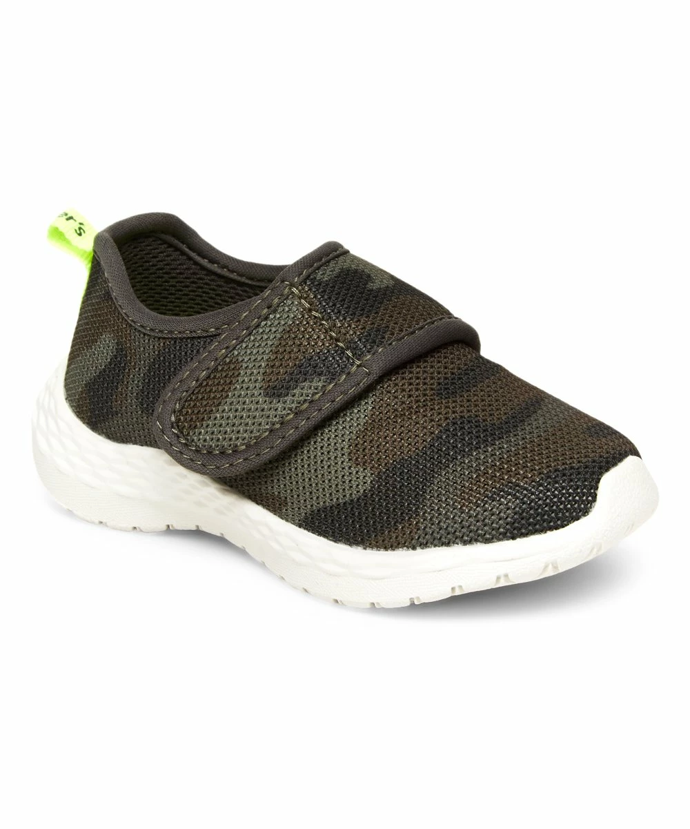 The hook-and-loop strap and back locker loop of this camo sneaker keep on and off quick for active little ones.