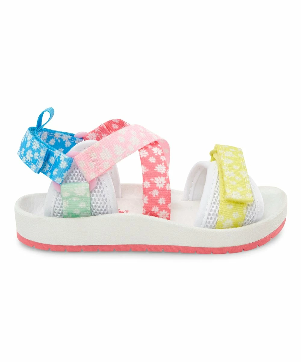 Little ones will bloom in this floral sandal featuring color blocked straps and a hook-and-loop slingback for quick changes.