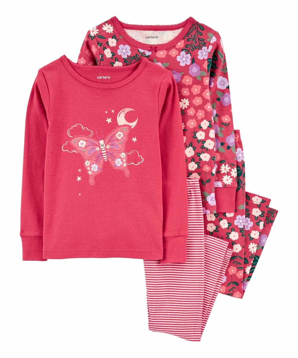 - Includes pink celestial butterfly and pink floral long-sleeve tops and light pink and pink floral pajama pants (four pieces total)