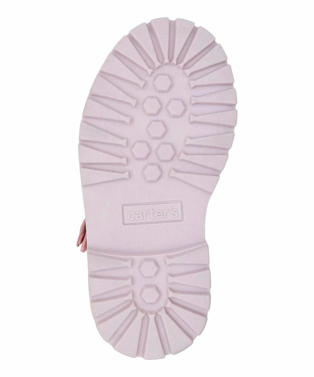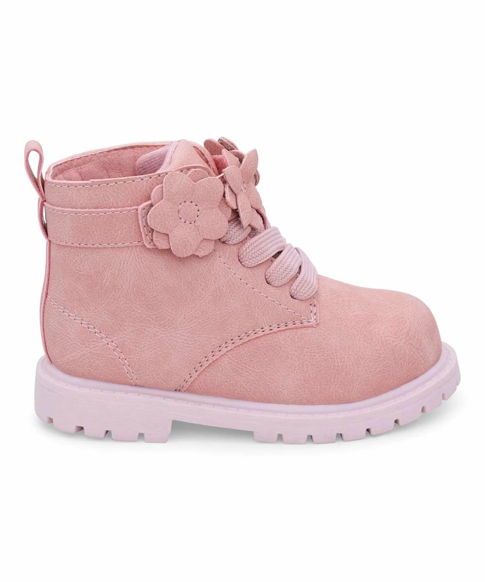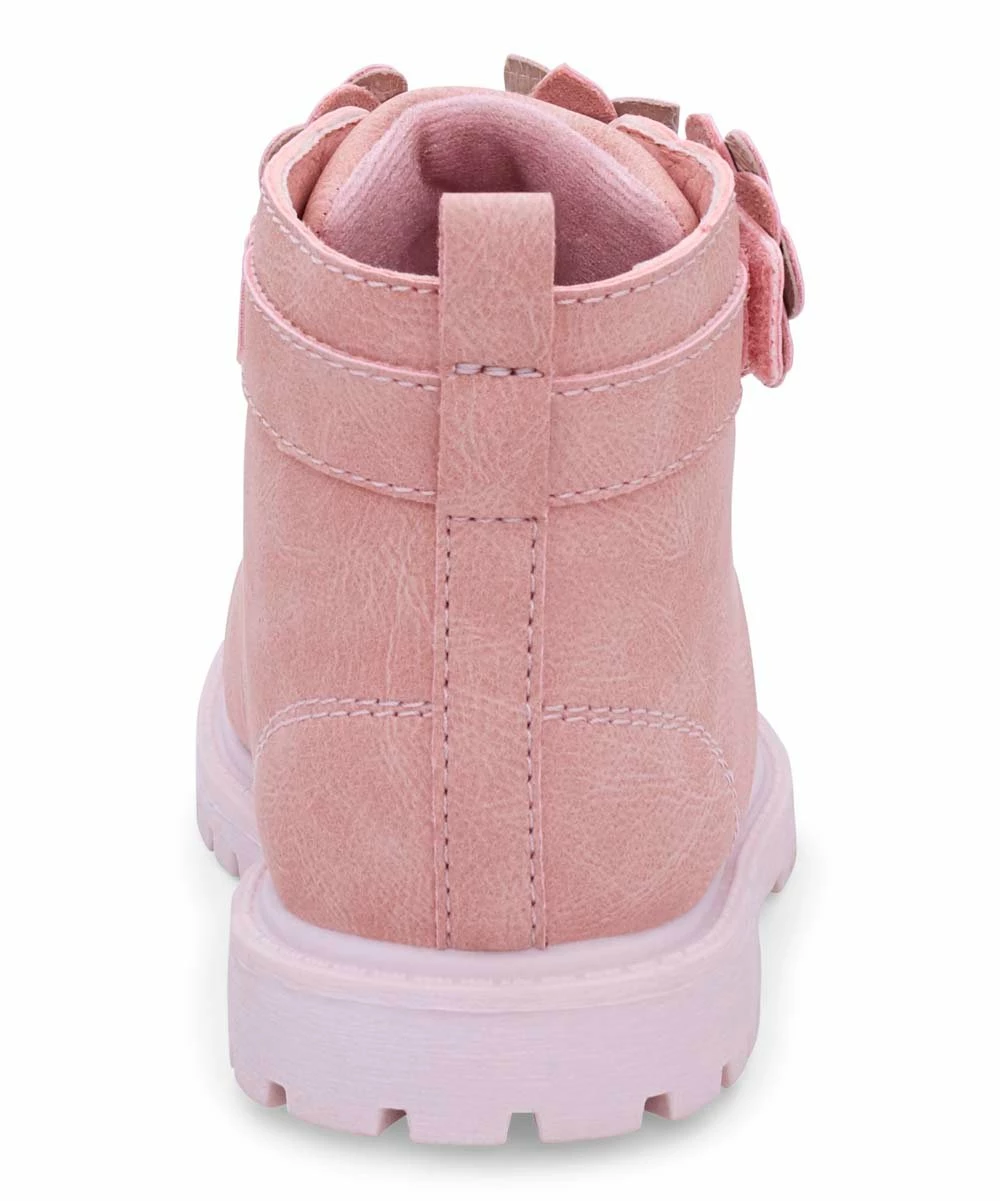 With a chunky lug outsole and 3D floral ankle accents, this modern boot provides versatile and casual style for little feet.