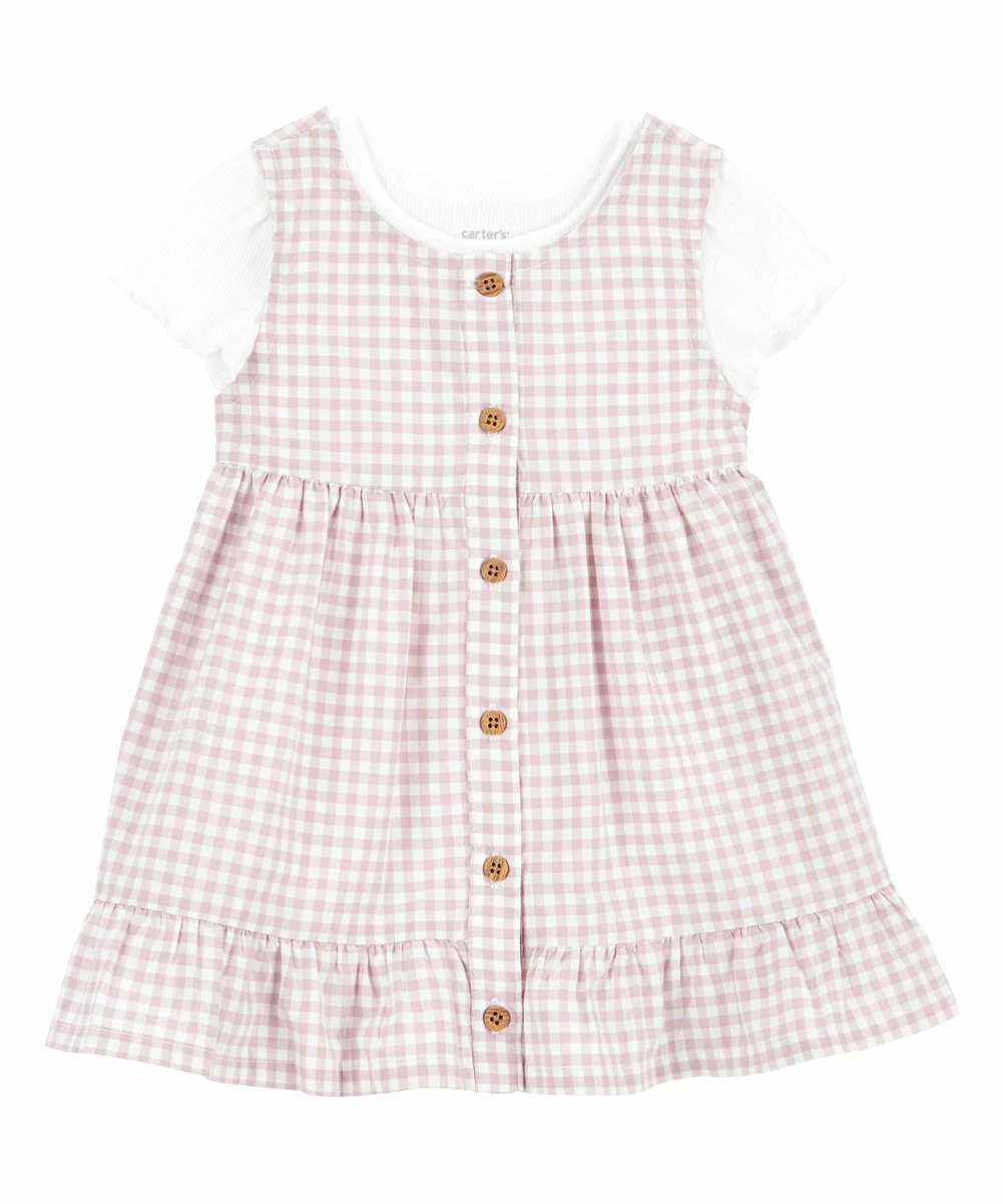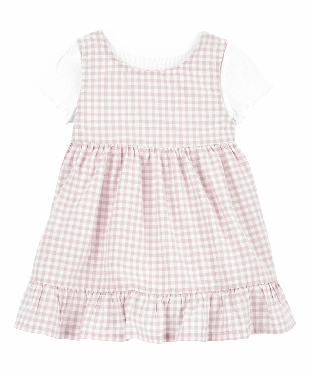 - Includes pink gingham jumper and white bodysuit (two pieces total)