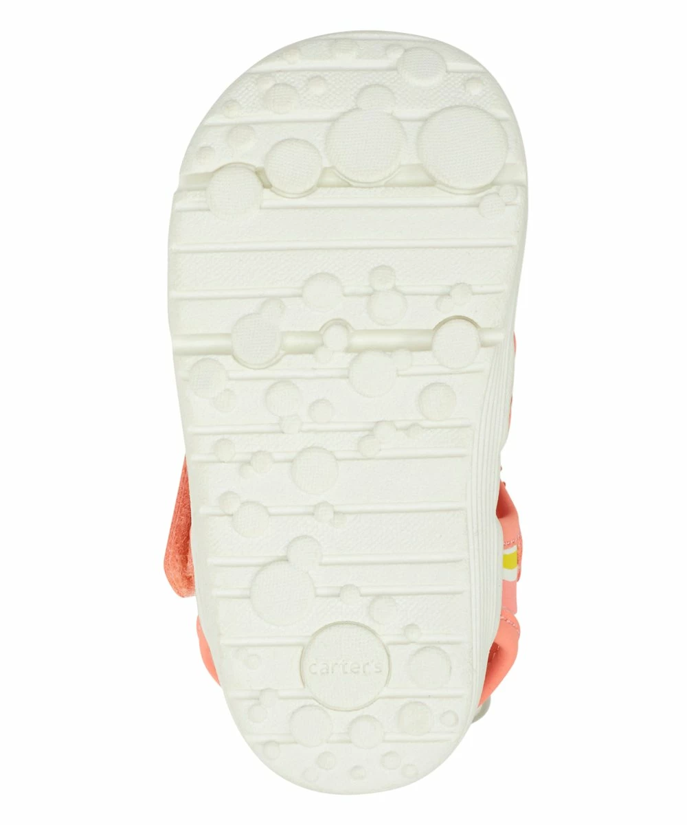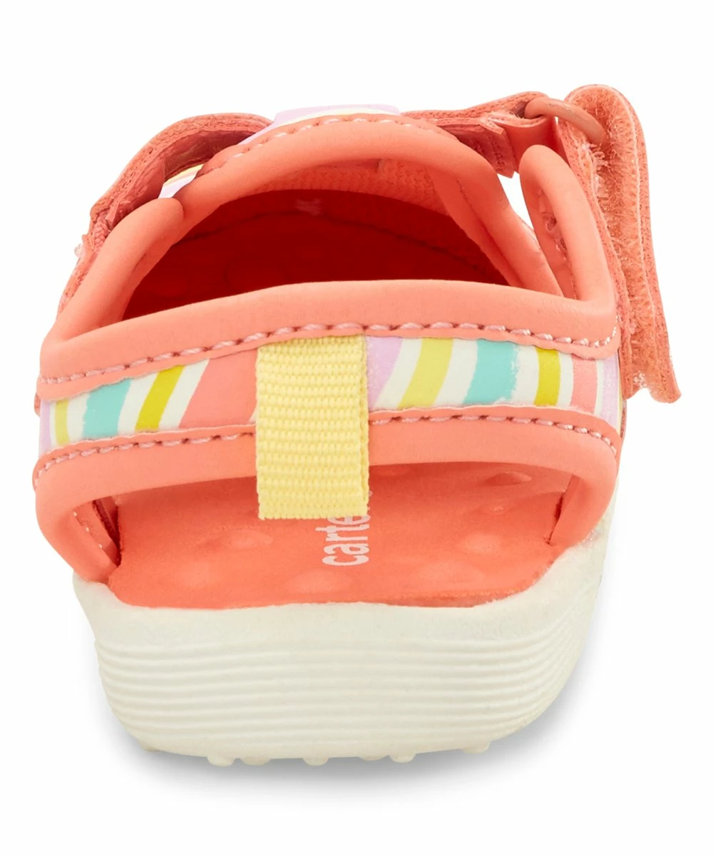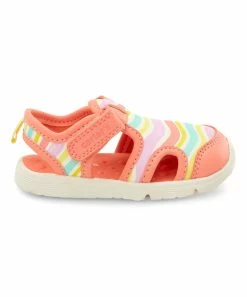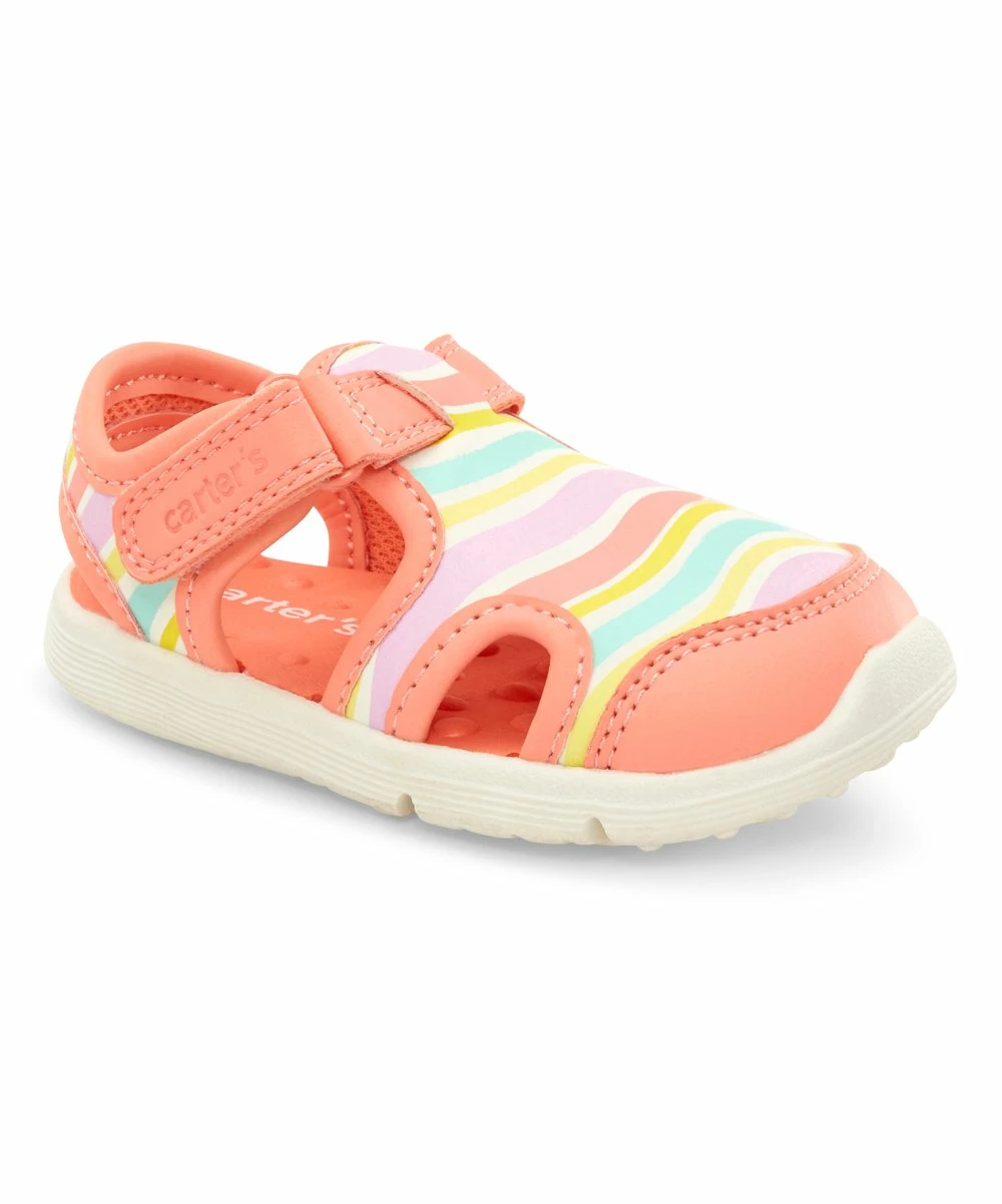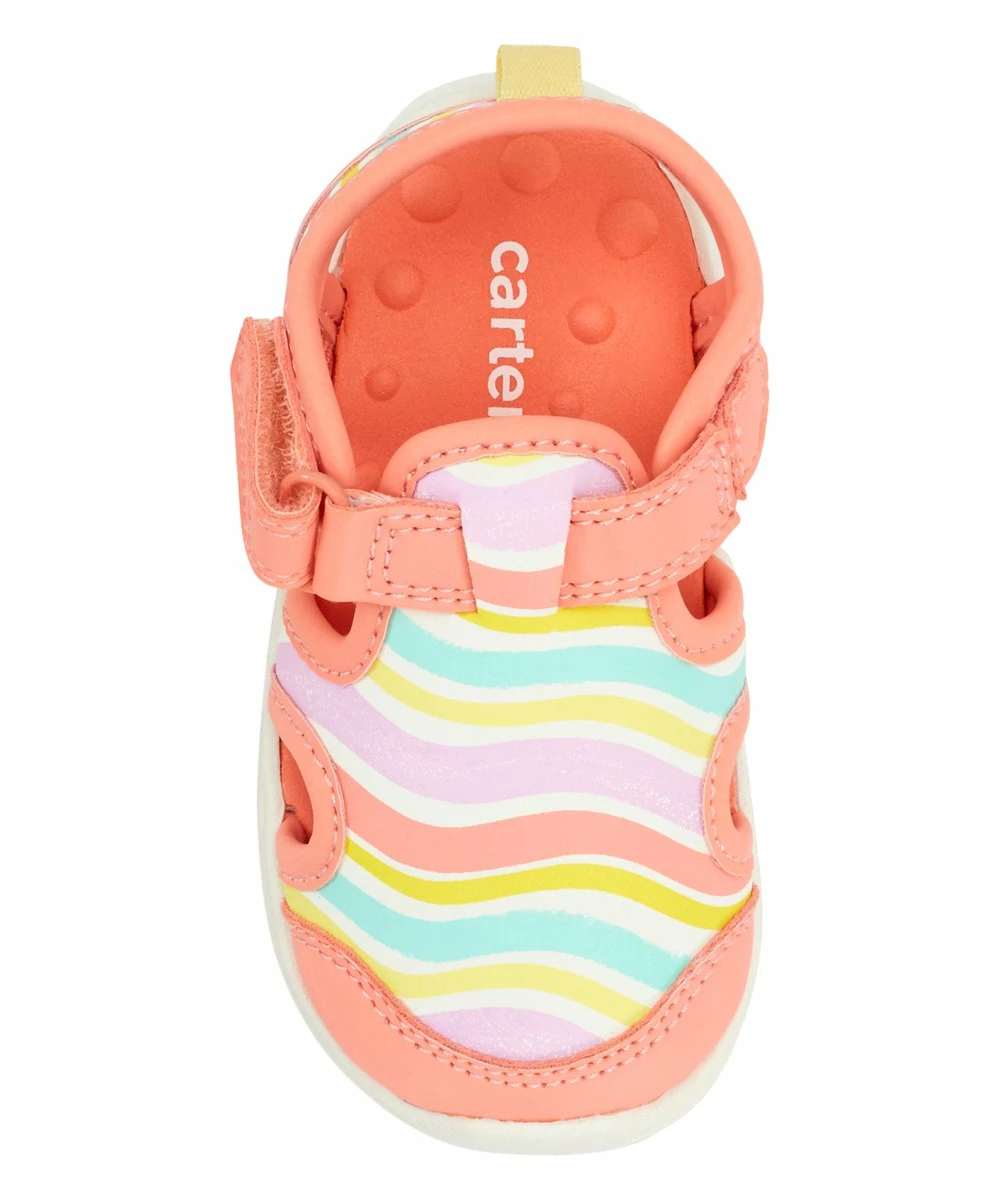 A wavy pastel print adds whimsy to this cutout sandal while sensory insoles and outsoles are designed to help kids improve motor control.