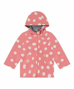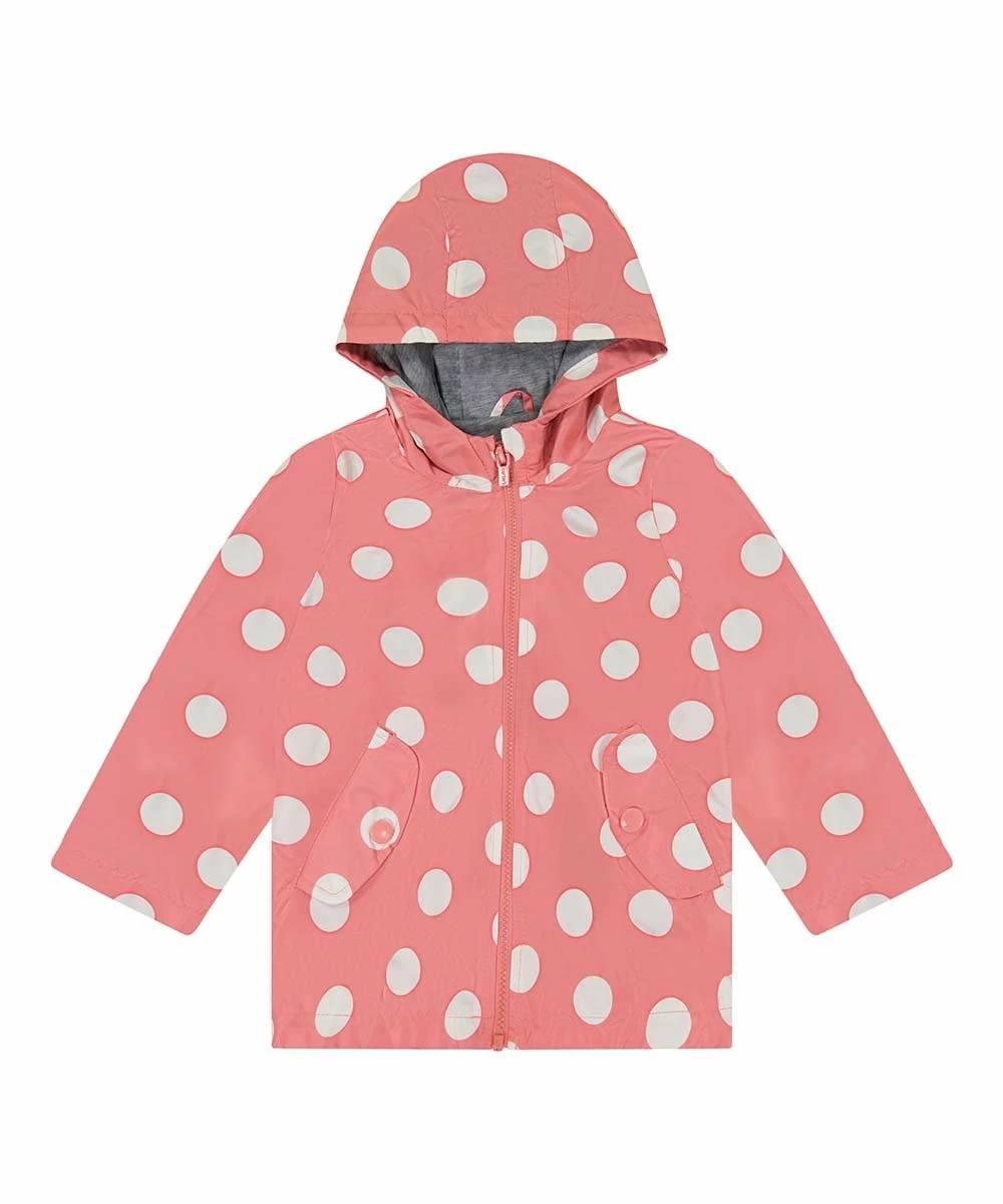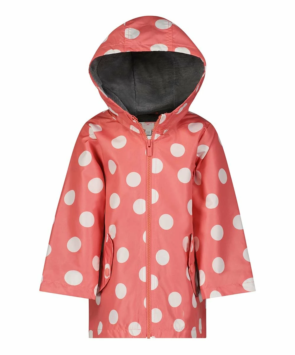 This charming raincoat keeps your youngster comfy and features a playful polka dot pattern.