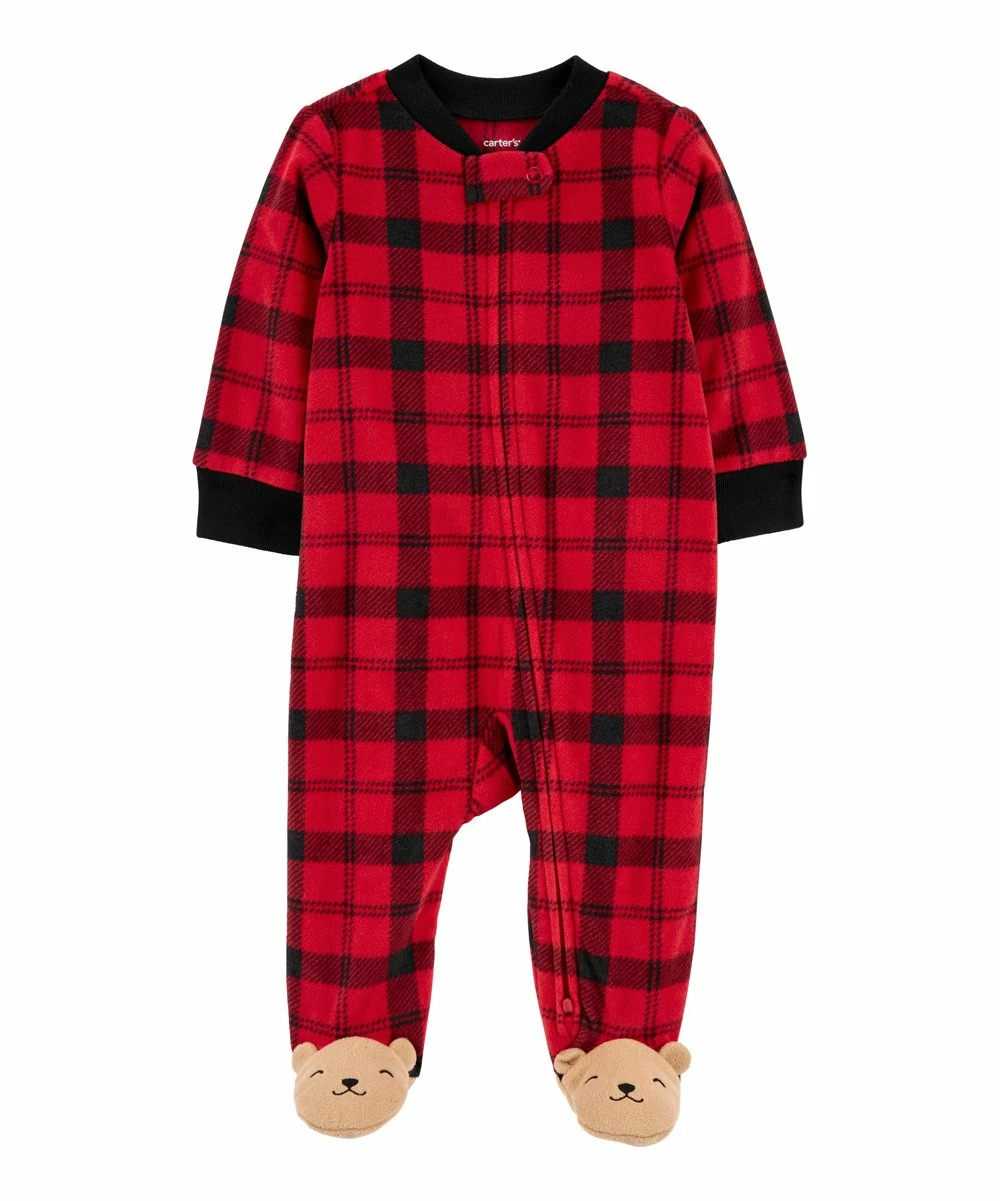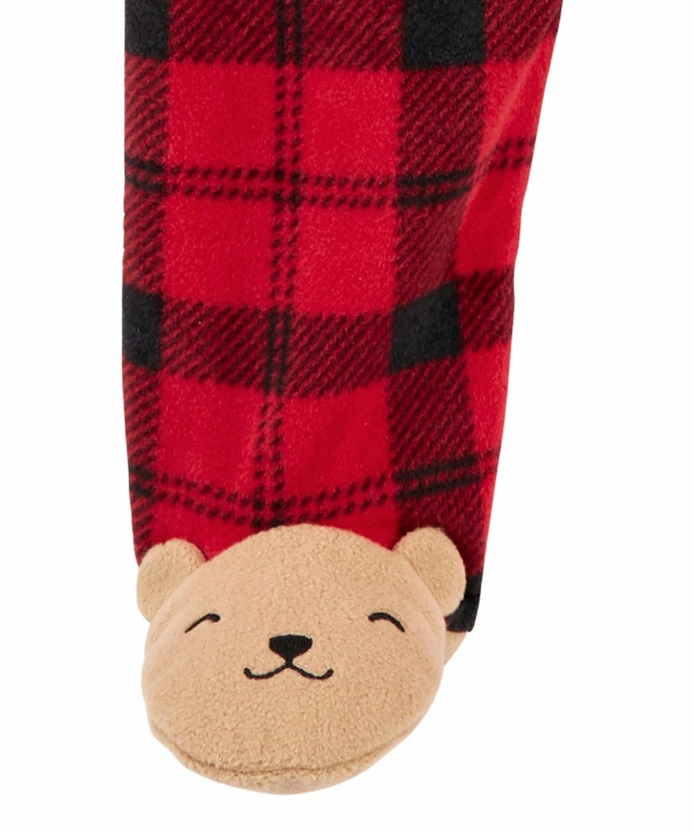 This comfy footie has an inverted two-way zipper so baby’s changes are warm and cozy. Tab zipper cover keeps everything tidily in place and bear-feet add a cute twist.