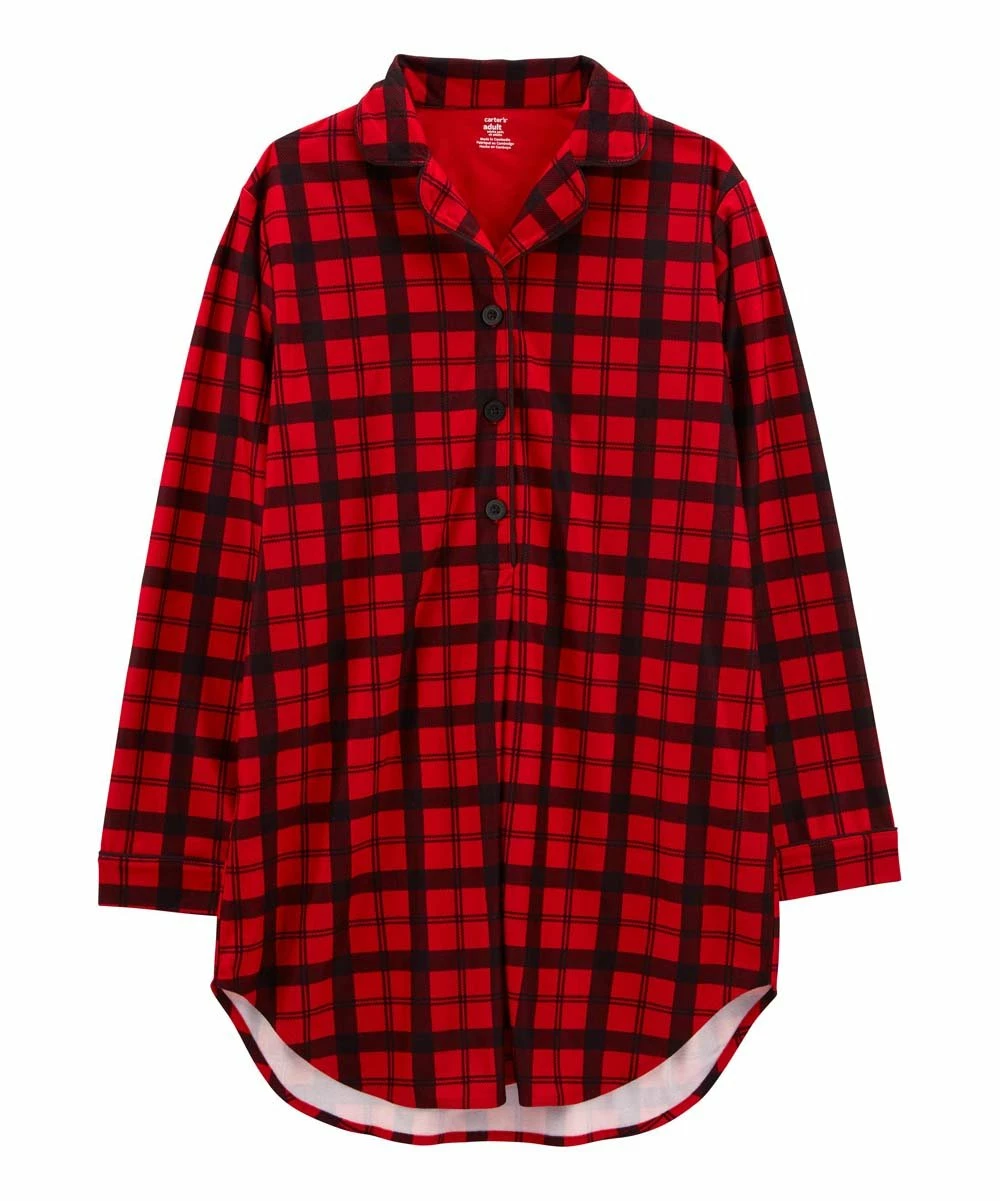 Stay cozy and warm with this sleep shirt featuring a timeless plaid print.