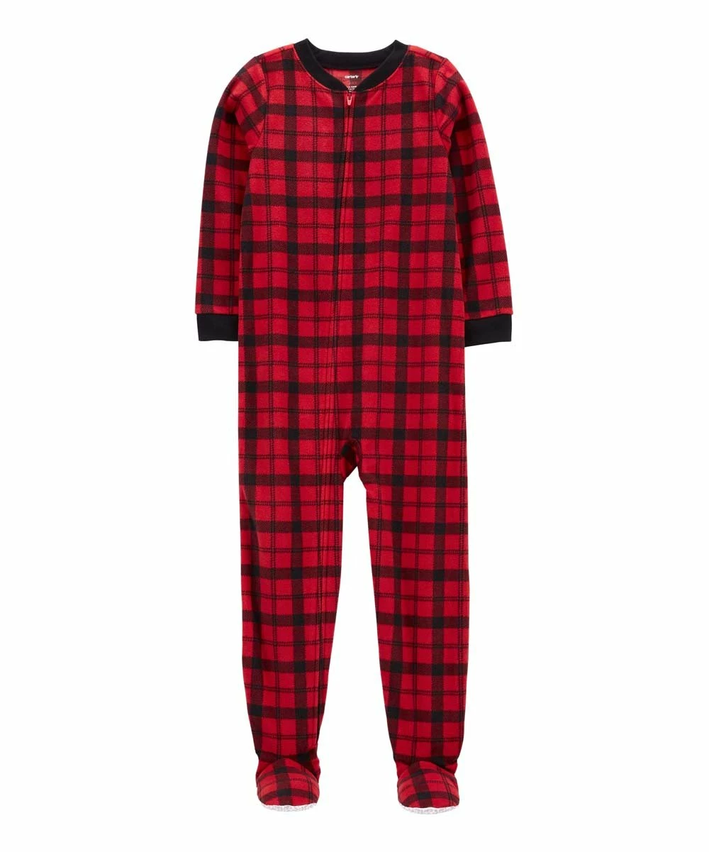Kids can get cozy in this playfully patterned footie with attached feet and a zip-up design.