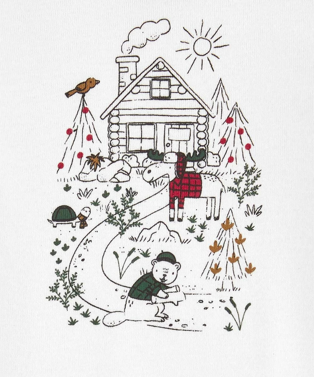 - Includes red kangaroo-pocket hoodie, white cabin long-sleeve bodysuit and black straight-leg pants (three pieces total)