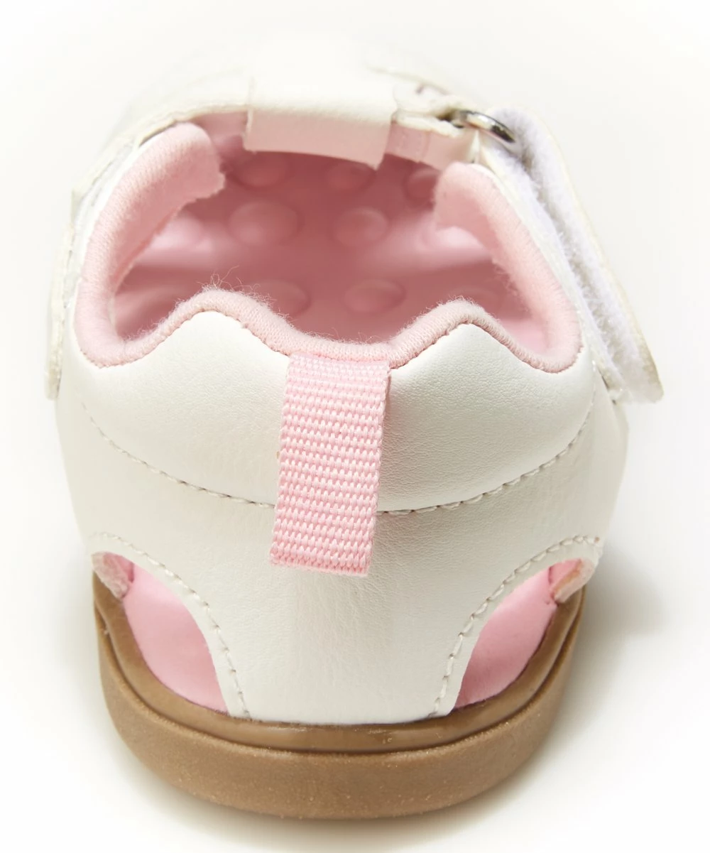 This sandal gives little ones a classic look with a woven T-strap design. Sensory insoles and outsoles are designed to help kids improve motor control.