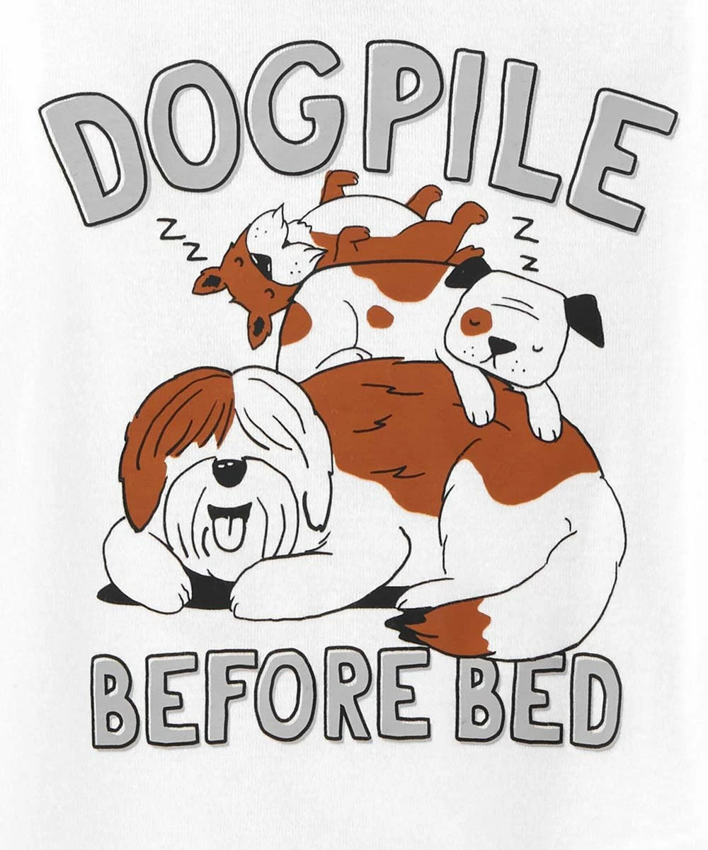 - Includes white and brown dogpile and brown dog long-sleeve tops and brown stripe and brown dog pajama pants (four pieces total)