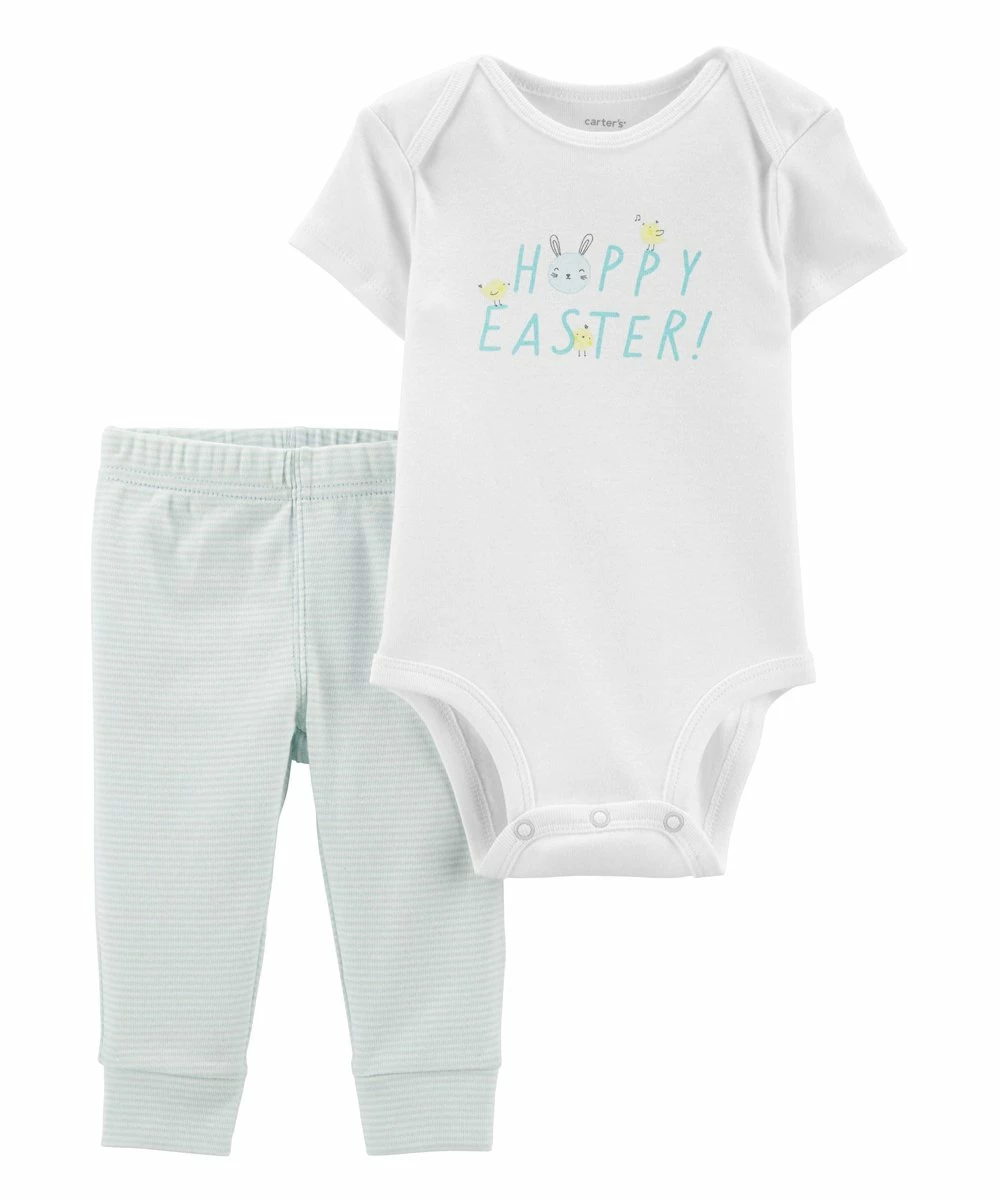 Your little bunny will be ready to hop into the festivities with this coordinating set crafted with soft cotton fabric and a cheerful graphic.