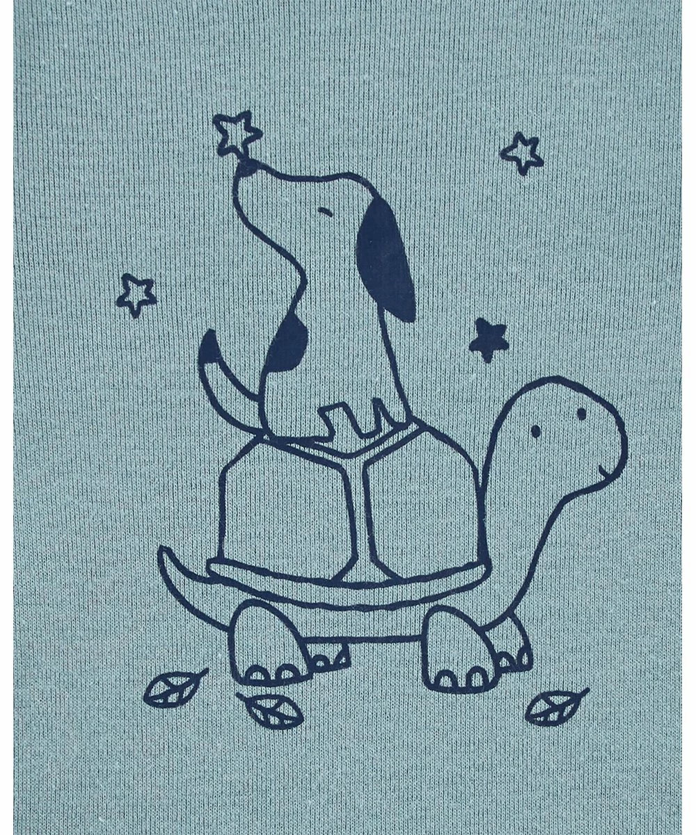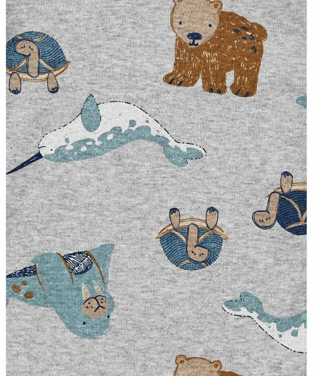 - Includes navy whale short-sleeve bodysuit, white turtle short-sleeve bodysuit, dusty blue dog and turtle friends short-sleeve bodysuit, beige pick-up truck short-sleeve bodysuit, and gray animals short-sleeve bodysuit (five bodysuits total)