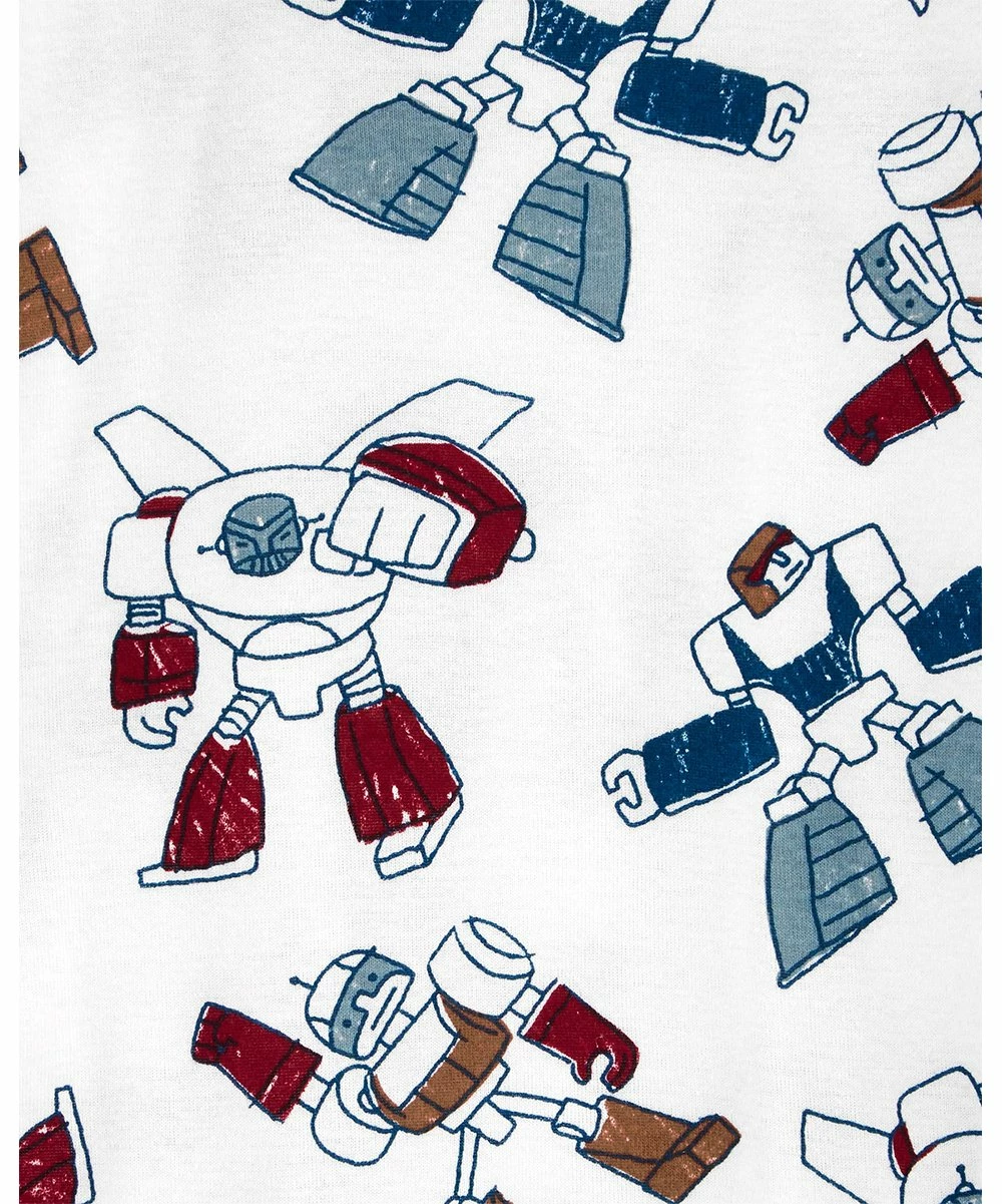 - Includes white robot blast-off long-sleeve pajama top, burgundy robot pajama pants, white robot long-sleeve pajama top, and white robot pajama pants (four pieces total)