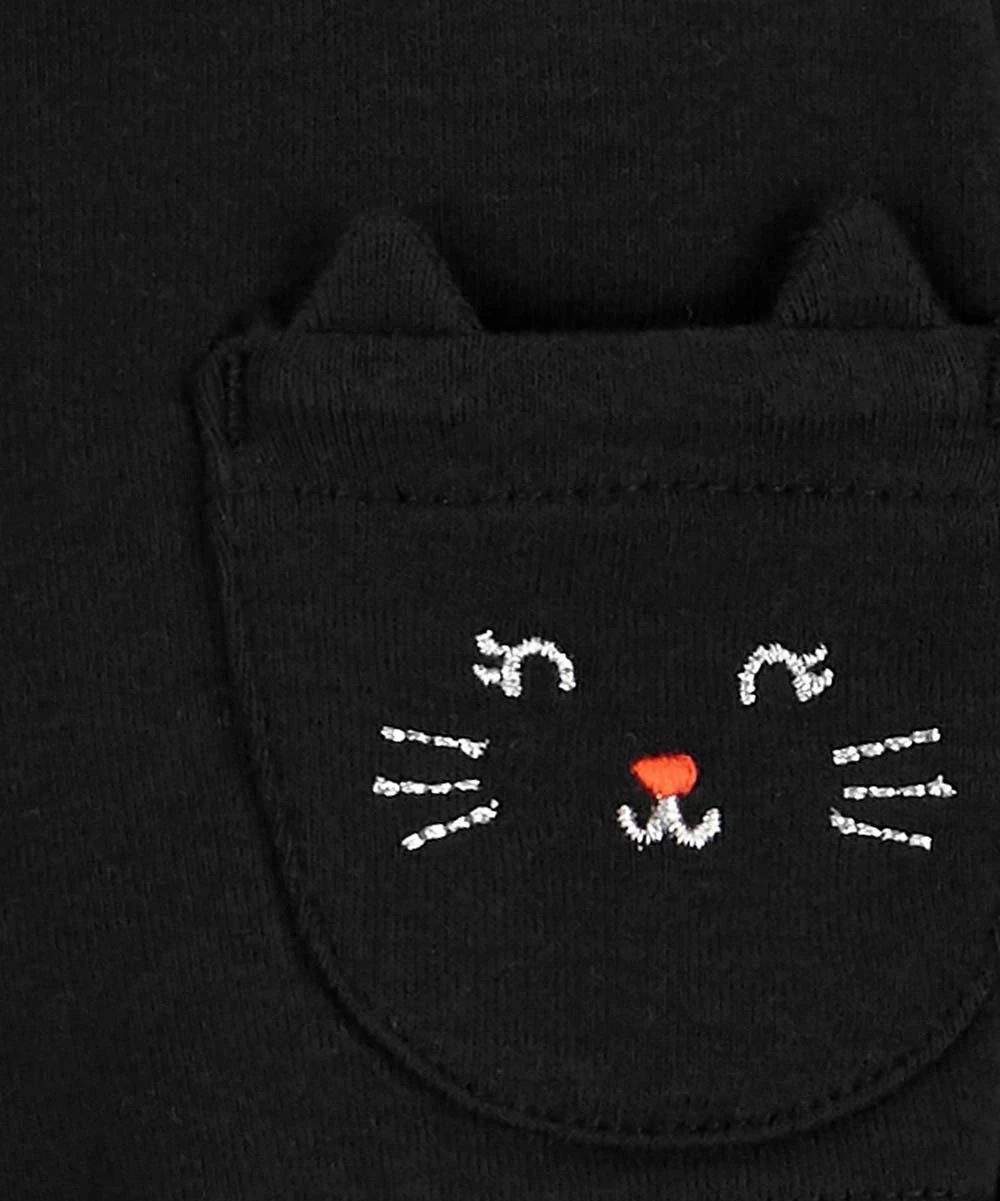 - Includes one white skirted bodysuit and one black kitty pocket cardigan (two pieces total)