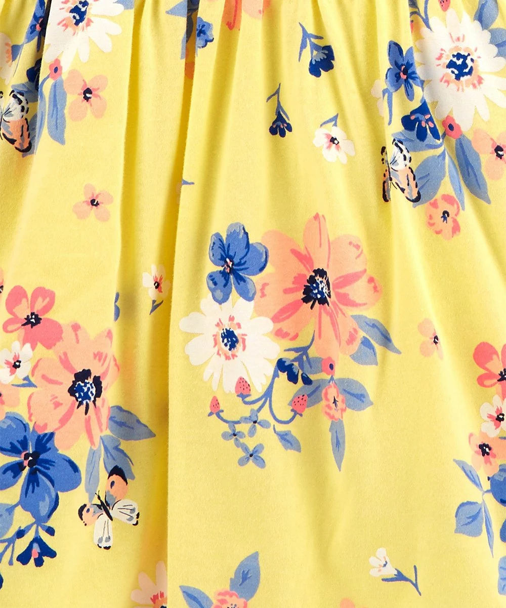 - Includes one yellow floral a-line dress and one blue polka dot short-sleeve a-line dress (two pieces total)