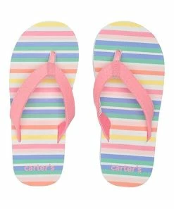 Carter’s | Pink & Green Stripe Linen-Blend Angel-Sleeve Top – Infant